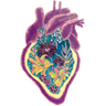 Печать на холсте, расшитие бусинами, витражные контуры.